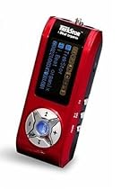 • Sleek red digital audio player with 1 GB flash memory and built-in FM tuner
